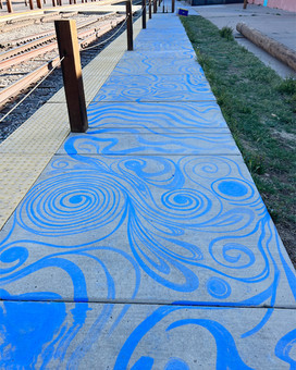 This overhead shot of this collective painting action allows us to see where the water might have been despite today's urban obstacles of train tracks, buildings, and hardscapes. It also highlights the contrast between Santa Fe’s current desert environment marked by extreme droughts and the historic Acequia Tenorio.