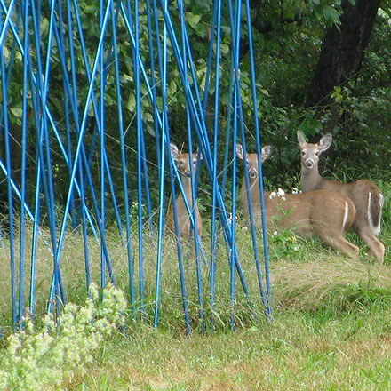 These bright blue exclosures protect plants against the destructive force of deer.
